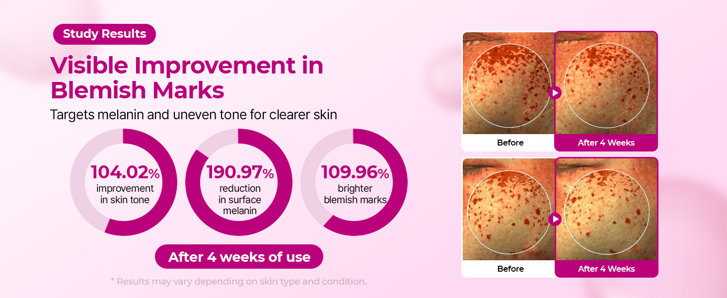 - Alpha-Arbutin visibly fades leftover blemish marks