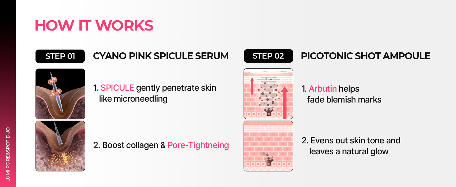 After cleansing, apply an appropriateamount to dry skinavoiding the eye and lip areas. Do not rub.Gently pat into the skin to help it absorb.The micro-spicules provide a microneedling-likeeffect to tighten enlarged pores